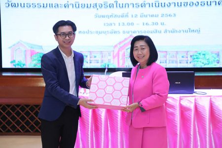 เมื่อวันพฤหัสบดีที่ 12 มีนาคม พ.ศ. 2563 ธนาคารออมสินโดยคุณสุภาภรณ์ สายทองอินทร์ รองผู้อำนวยการธนาคารออมสิน กลุ่มกำกับและธรรมาภิบาล เป็นประธานเปิดการอบรมหลักสูตร “การประเมินคุณธรรมและความโปร่งใสในการดำเนินงานของหน่วยงานภาครัฐ” (Integrity & Transparency Assessment : ITA) ประจำปี 2563 รุ่นที่ 1 โดยมีผู้ทรงคุณวุฒิ ศาสตราจารย์ ดร.สุชัชวีร์ สุวรรณสวัสดิ์ อธิการคณบดีสถาบันเทคโนโลยรพระจอมเกล้าเจ้าคุณทหารลาดกระบัง ให้เกียรติเป็นวิทยากรในการบรรยายให้ความรู้ในเรื่อง “เปลี่ยนแปลงเพื่อเติบโตอย่างยั่งยืนในโลก Disruption” และ คุณกฤตนันทน์ เตนากุล เจ้าพนักงานป้องกันการทุจริตปฏิบัติการ ศูนย์ประเมินคุณธรรมและความโปร่งใสของหน่วยงานภาครัฐ สำนักงานคณะกรรมการป้องกันและปราบปรามการทุจริตแห่งชาติ บรรยายให้ความรู้ในเรื่อง “หลักเกณฑ์การประเมิน ITA ประจำปี 2563” แก่คณะผู้บริหารและพนักงานธนาคารออมสิน จำนวน 160 คน ณ หอประชุมบุรฉัตร ธนาคารออมสินสำนักงานใหญ่