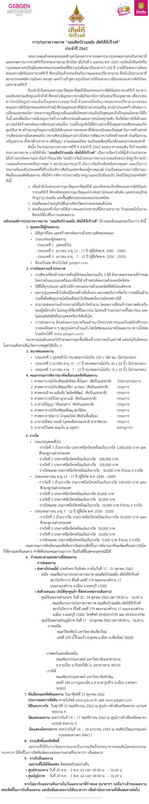 หน้าหลัก > News > ข่าวประชาสัมพันธ์ > งานแถลงข่าว การประกวดวาดภาพ ออมศิลป์ร่วมสมัย เทิดไท้จักรีวงศ์