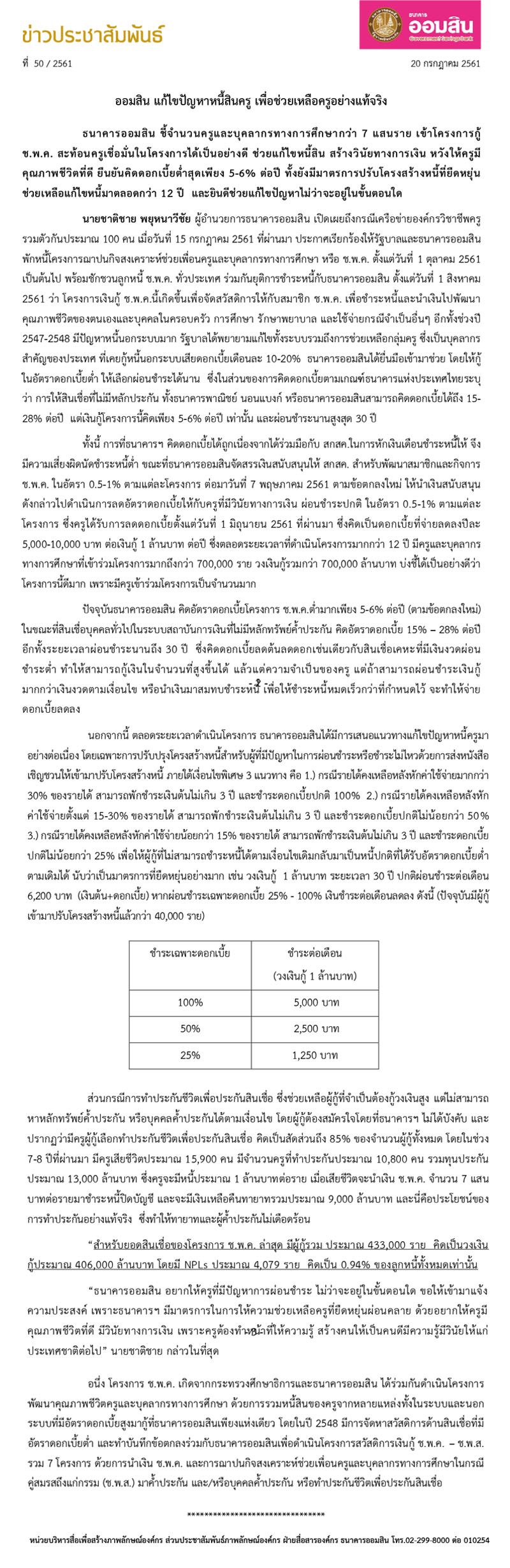 ธนาคารออมสินชี้แจงโครงการช่วยเหลือหนี้สินครูฯ