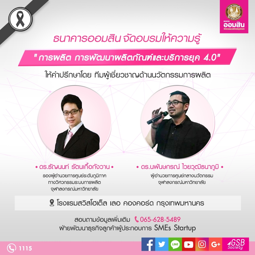 ธนาคารออมสิน ขอเชิญผู้ประกอบการ SMEs Start up เข้าร่วมสัมมนาเชิงปฏิบัติการ Biz Clinic for SMEs Start Up