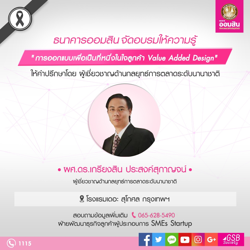 งในใจลูกค้า Value Added Design” โดยวิทยากรผู้เชี่ยวชาญด้าน