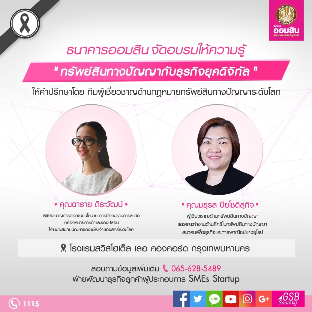 ธนาคารออมสิน ขอเชิญผู้ประกอบการ SMEs Start up เข้าร่วมสัมมนาเชิงปฏิบัติการ Biz Clinic for SMEs Start Up