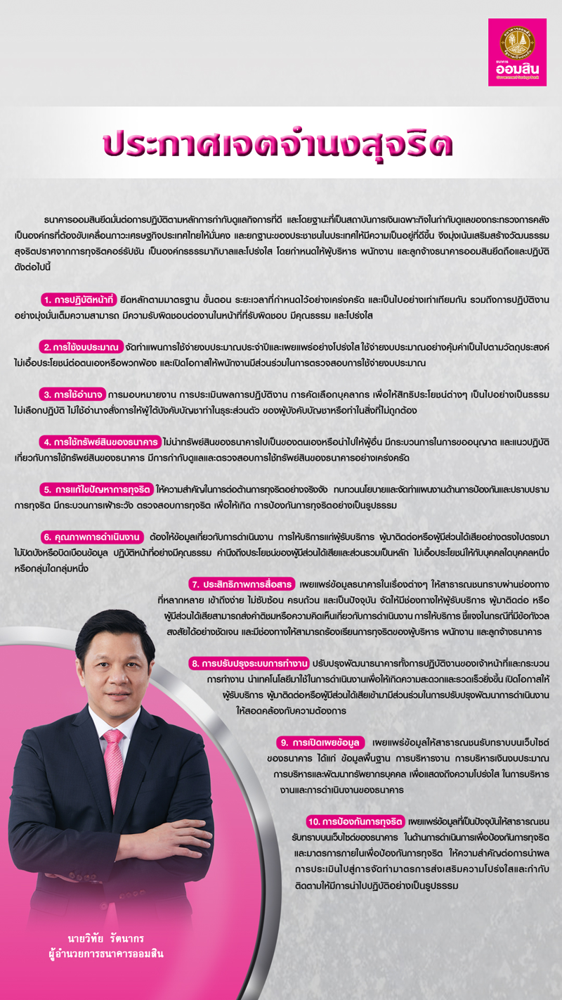 ประกาศเจตจำนงสุจริต - ธนาคารออมสิน