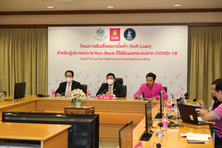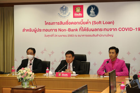 เมื่อวันศุกร์ที่ 24 เมษายน พ.ศ. 2563 ณ ห้องประชุมรามจิตติ ธนาคารออมสินสำนักงานใหญ่ ดร.ชาติชาย พยุหนาวีชัย ผู้อำนวยการธนาคารออมสิน เป็นประธานการประชุม “โครงการสินเชื่อดอกเบี้ยต่ำ (Soft Loan) สำหรับผู้ประกอบธุรกิจการเงินที่ไม่ใช่สถาบันการเงิน (Non-Bank) ที่ได้รับผลกระทบจาก COVID-19” ผ่านระบบการประชุมทางไกลผ่านจอภาพ หรือ VDO Conference ซึ่งธนาคารออมสินจัดขึ้นเพื่อชี้แจงกรอบหลักเกณฑ์และเงื่อนไขการให้บริการสินเชื่อดังกล่าว โดยมีผู้ประกอบธุรกิจการเงิน Non-Bank ผู้ให้บริการทางการเงินอื่นผ่านสมาคมและชมรมต่างๆ พร้อมด้วยผู้แทนจากธนาคารแห่งประเทศไทยและสำนักงานเศรษฐกิจการคลัง เข้าร่วมการประชุม