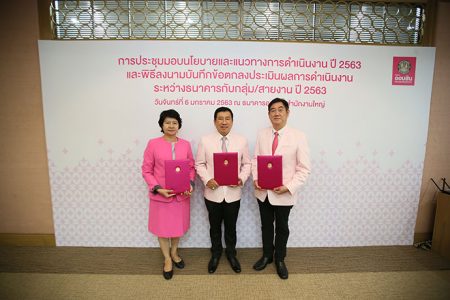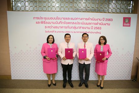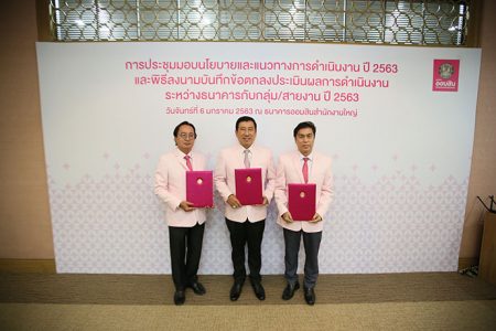 เมื่อวันจันทร์ที่ 6 มกราคมพ.ศ. 2563 ดร.ชาติชายพยุหนาวีชัย ผู้อำนวยการธนาคารออมสินเป็นประธานในการประชุมมอบนโยบายและแนวทางการดำเนินงานปี2563และพิธีลงนามในบันทึกข้อตกลงประเมินผลการดำเนินงานระหว่างธนาคารกับกลุ่ม/สายงานปี 2563 โดยมีคณะผู้บริหารระดับกลุ่มและสายงานร่วมรับมอบนโยบายและลงนามในบันทึกข้อตกลงดังกล่าวโดยพร้อมเพรียงณห้องกำแพงเพชรธนาคารออมสินสำนักงานใหญ่