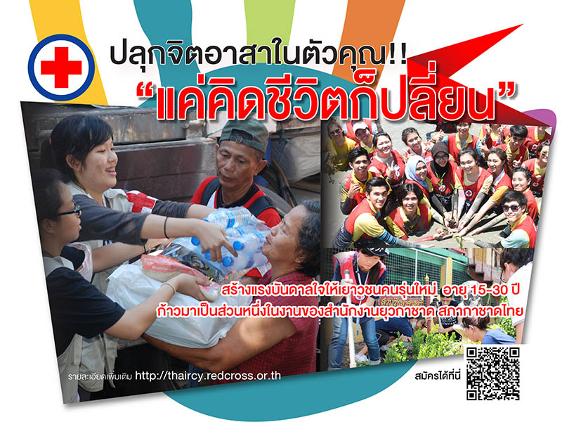 ปลุกจิตอาสาในตัวคุณ !! สร้างแรงบันดาลใจให้เยาวชนคนรุ่นใหม่ อายุ 15-30 ปี ก้าวมาเป็นส่วนหนึ่งในงานของสำนักงานยุวกาชาด สภากาชาดไทย