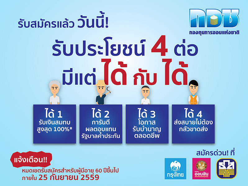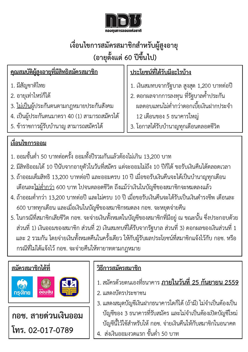 รับสมัคร ผู้มีอายุ 60 ปีขึ้นไป เป็นสมาชิกกองทุนการออมแห่งชาติ
