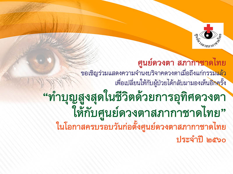 ศูนย์ดวงตา สภากาชาดไทยขอเชิญร่วมแสดงความจำนงบริจาคดวงตา