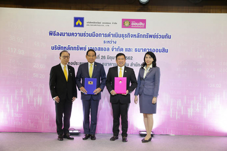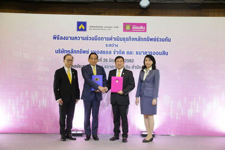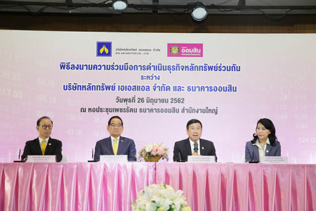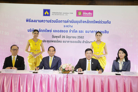 เมื่อวันพุธที่ 26 มิถุนายน พ.ศ. 2562 ดร.ชาติชาย พยุหนาวีชัย ผู้อำนวยการธนาคารออมสิน และพลเอก ชัยณรงค์ หนุนภักดีประธานกรรมการ บริษัทหลักทรัพย์ เอเอสแอล จำกัด ร่วมลงนามบันทึกความร่วมมือการดำเนินธุรกิจหลักทรัพย์ร่วมกัน เพื่อความร่วมมือในการดำเนินธุรกิจหลักทรัพย์ และร่วมกันให้บริการดูแลลูกค้าทั้งในด้านหลักทรัพย์และผลิตภัณฑ์ทางการเงินทุกรูปแบบ ที่พร้อมอำนวยความสะดวกบนแพลตฟอร์มที่เชื่อมต่อกันระหว่างธนาคารออมสินและบริษัทหลักทรัพย์ เอเอสแอล จำกัด โดยมีคุณปภากร รัตนเศรษฐ รองผู้อำนวยการธนาคารออมสิน กลุ่มลงทุนและบริหารการเงิน และคุณชาญชัย กุลถาวรากร ประธานกรรมการบริหาร บริษัทหลักทรัพย์ เอเอสแอล จำกัด เป็นสักขีพยานในการลงนามบันทึกความร่วมมือ และมีดร.รินใจ ชาครพิพัฒน์ กรรมการผู้จัดการ บริษัท ตลาดสัญญาซื้อขายล่วงหน้า (ประเทศไทย) จำกัด (มหาชน) คณะผู้บริหารธนาคารออมสิน พร้อมด้วยสื่อมวลชนเข้าร่วมในพิธีลงนามบันทึกความร่วมมือดังกล่าว ณ หอประชุมเพชรรัตน ธนาคารออมสินสำนักงานใหญ่