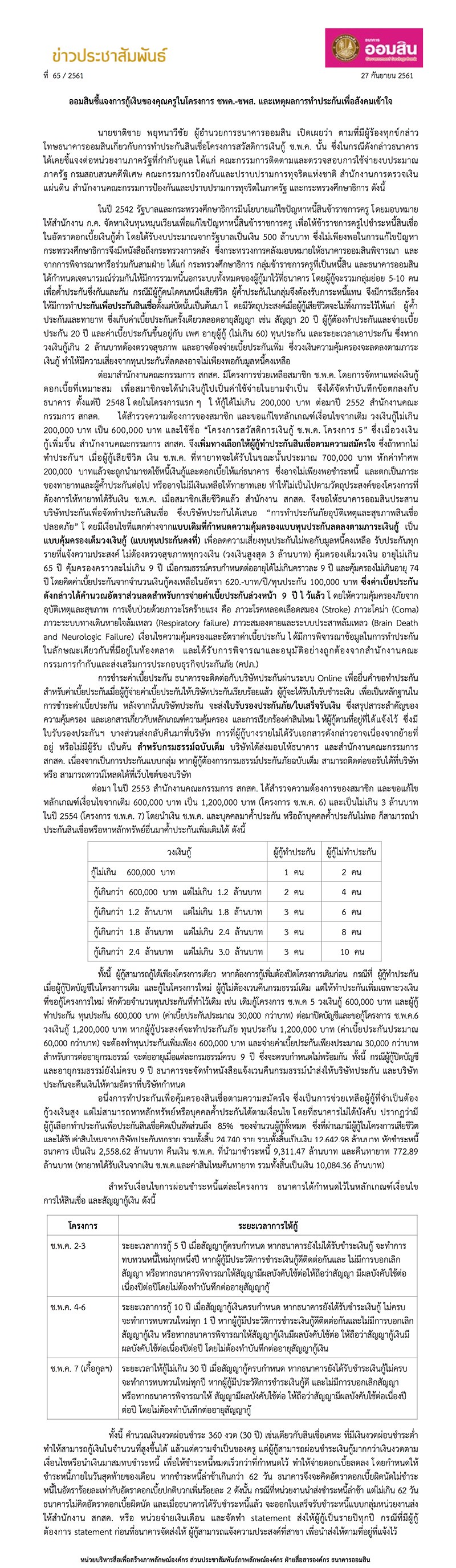 ออมสินชี้แจงการกู้เงินของคุณครูในโครงการ ชพค.-ชพส.