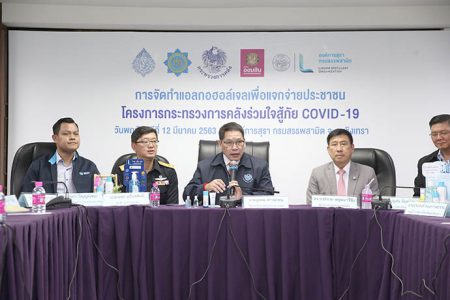 เมื่อวันศุกร์ที่ 13 มีนาคม พ.ศ. 2563 คุณพชร อนันตศิลป์ อธิบดีกรมสรรพสามิต และประธานกรรมการธนาคารออมสิน พร้อมด้วย ดร.ชาติชาย พยุหนาวีชัย ผู้อำนวยการธนาคารออมสิน ร่วมแถลงข่าวความคืบหน้าการจัดทำแอลกอฮอล์เจล จำนวน 1 ล้านชิ้น เพื่อแจกจ่ายประชาชนในโครงการกระทรวงการคลังร่วมใจสู้ภัย COVID-19 ณ ห้องรามจิตติ ธนาคารออมสินสำนักงานใหญ่ โดยดีเดย์กำหนดแจกแอลกอฮอล์เจลขนาด 25 ml. เพื่อทำความสะอาดมือให้กับประชาชน จำนวน 2 รอบ รอบละ 5 แสนชิ้น รอบแรกในวันที่ 27 มีนาคม 2563 และ รอบสอง วันที่ 10 เมษายน 2563 นี้ ในเวลา 09.00 น. พร้อมกันที่ธนาคารออมสินทุกสาขาทั่วประเทศ