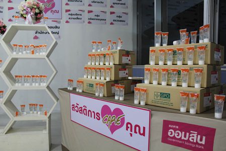 เมื่อวันอังคารที่ 10 มีนาคม พ.ศ. 2563 คุณนำพร ยมนา รองผู้อำนวยการธนาคารออมสินอาวุโส กลุ่มทรัพยากรบุคคล เป็นประธานในการแจกเจลแอลกอฮอล์ที่ผลิตโดยองค์การเภสัชกรรม ขนาดพกพา 50 กรัม จำนวน 5,000 ชิ้น ให้แก่พนักงานและลูกจ้างธนาคารออมสินสำนักงานใหญ่ เพื่อลดการสะสมของเชื้อโรคและป้องกันความเสี่ยงต่อการติดเชื้อไวรัส COVID-19 ณ ศูนย์บริการทางการแพทย์ ธนาคารออมสินสำนักงานใหญ่