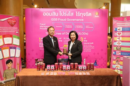 เมื่อวันจันทร์ที่ 19 สิงหาคม พ.ศ. 2562 ธนาคารออมสินโดยคุณสุภาภรณ์ สายทองอินทร์ รองผู้อำนวยการธนาคารออมสิน กลุ่มกำกับและธรรมาภิบาล ร่วมงานสัมมนาแลกเปลี่ยนเรียนรู้ระดับชาติ ภายใต้หัวข้อ “การผลักดันยุทธศาสตร์ชาติว่าด้วยการป้องกันและปราบปรามการทุจริต สู่ประเทศไทยใสสะอาด ไทยทั้งชาติต้านทุจริต” ประจำปี 2562 ซึ่งสำนักงานคณะกรรมการป้องกันและปราบปรามการทุจริตแห่งชาติ (ป.ป.ช.) จัดขึ้น โดยมี พลตำรวจเอก วัชรพล ประสารราชกิจ ประธานกรรมการ ป.ป.ช. เป็นประธานเปิดงาน ณ โรงแรมมิราเคิลแกรนด์คอนเวนชั่น กรุงเทพฯ ในการนี้ รองผู้อำนวยการธนาคารออมสิน กลุ่มกำกับและธรรมาภิบาล ได้ให้การต้อนรับพร้อมมอบของที่ระลึกแก่ประธานกรรมการ ป.ป.ช. ในโอกาสเยี่ยมชมบูธนิทรรศการ “ออมสิน โปร่งใส ไร้ทุจริต” ของธนาคารออมสินภายในงานดังกล่าวด้วย