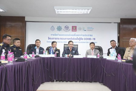 เมื่อวันพฤหัสบดีที่ 12 มีนาคม พ.ศ. 2563 ดร.ชาติชาย พยุหนาวีชัย ผู้อำนวยการธนาคารออมสิน ร่วมแถลงข่าวและมอบเงินสนับสนุนจำนวน 15 ล้านบาท ในการจัดทำแอลกอฮอล์เจลใช้ทำความสะอาดมือสำหรับแจกจ่ายประชาชน จำนวน 1,000,000 ล้านชิ้น ซึ่งเป็นหนึ่งในโครงการกระทรวงการคลังร่วมใจสู้ภัย Covid-19 ที่ธนาคารออมสินร่วมมือกับหน่วยงานในสังกัดกระทรวงการคลัง ประกอบด้วย สำนักงานสลากกินแบ่งรัฐบาล และองค์การสุรา กรมสรรพสามิต ดำเนินการจัดทำ โดยมีดร.อุตตม สาวนายน รัฐมนตรีว่าการกระทรวงการคลัง เป็นประธานในการแถลงข่าว และมีคุณธนกร วังบุญคงชนะ เลขานุการรัฐมนตรีว่าการกระทรวงการคลัง คุณพชร อนันตศิลป์ อธิบดีกรมสรรพสามิต ประธานกรรมการธนาคารออมสิน และพ.ต.อ.บุญส่ง จันทรีศรี ผู้อำนวยการสำนักงานสลากกินแบ่งรัฐบาล ร่วมแถลงข่าว ณ องค์การสุรา กรมสรรพสามิต จ.ฉะเชิงเทรา