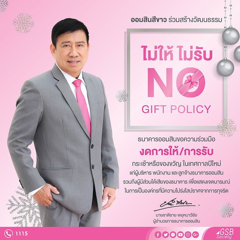 ออมสินสีขาว ร่วมสร้างวัฒนธรรม ไม่ให้ ไม่รับ - ธนาคารออมสิน