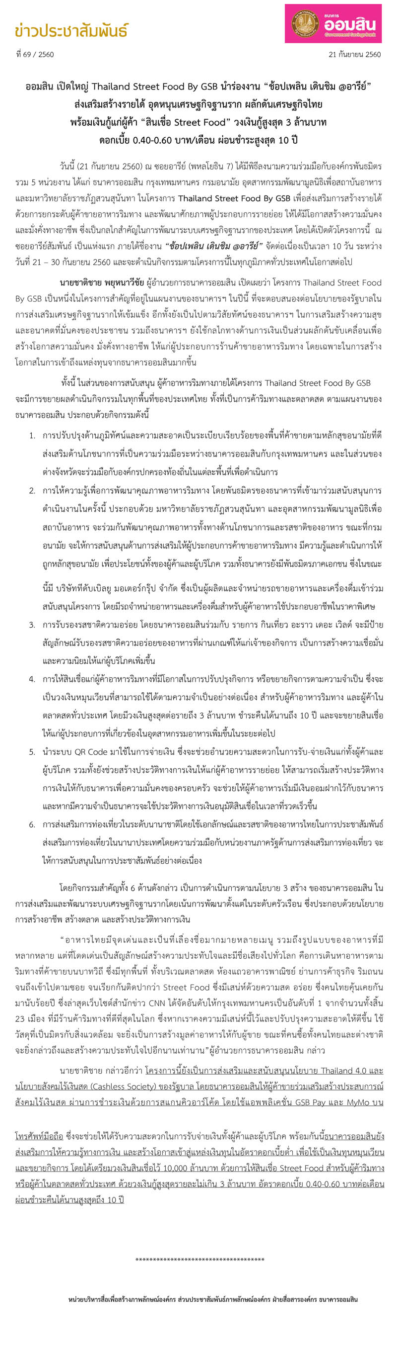 ออมสิน เปิดใหญ่ Thailand Street Food By GSB นำร่องงาน “ช้อปเพลิน เดินชิม @อารีย์”