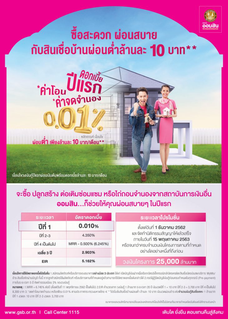ซื้อสะดวก ผ่อนสบาย กับสินเชื่อบ้านผ่อนต่ำล้านละ 10 บาท