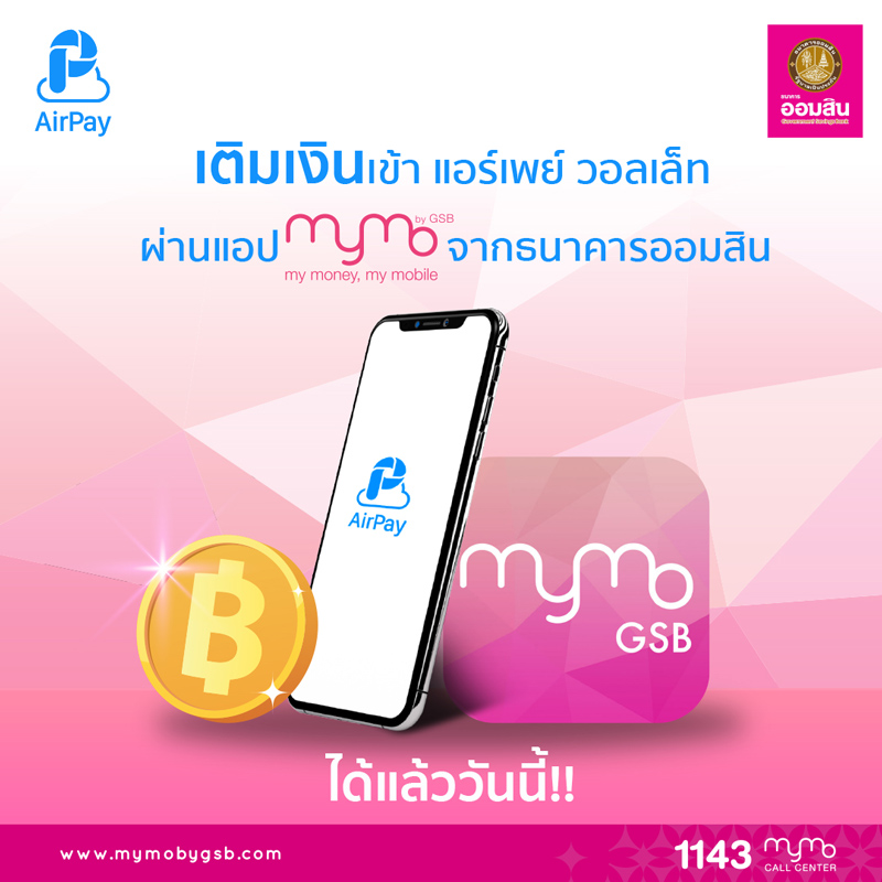 เติมเงินเข้าแอร์เพย์ วอลเล็ท ผ่านแอป MyMo จากธนาคารออมสิน