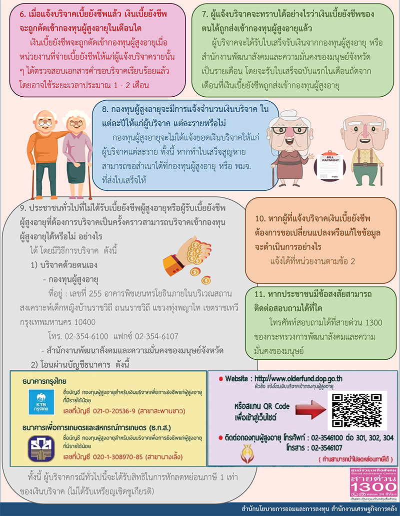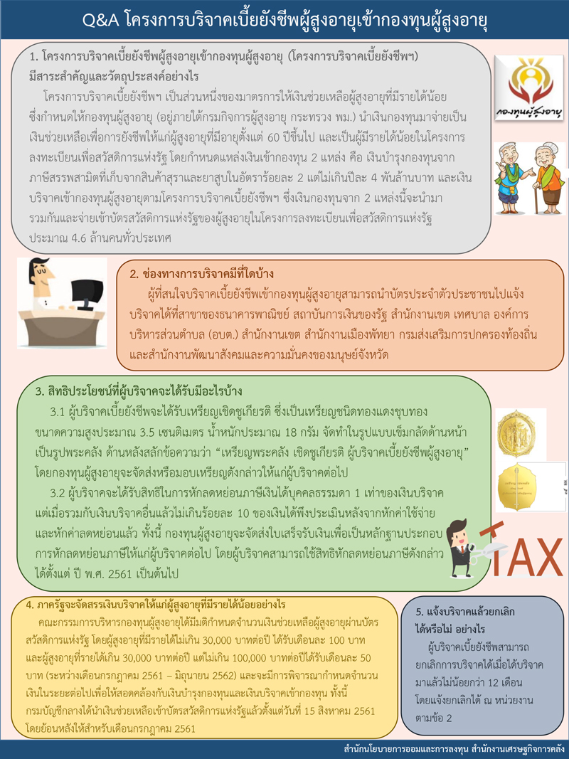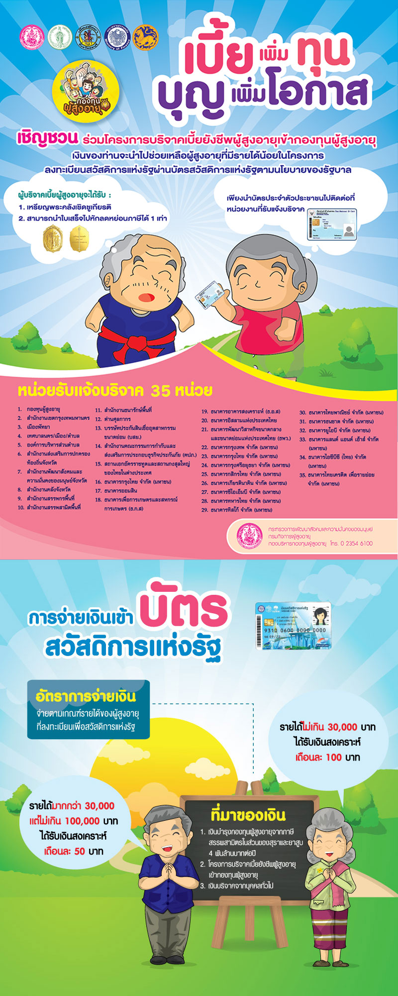 ดาวน์โหลด >> ข้อมูลโครงการบริจาคเบี้ยยังชีพผู้สูงอายุเข้ากองทุนผู้สูงอายุ เพื่อให้เงินช่วยเหลือผู้สูงอายุที่มีรายได้น้อย