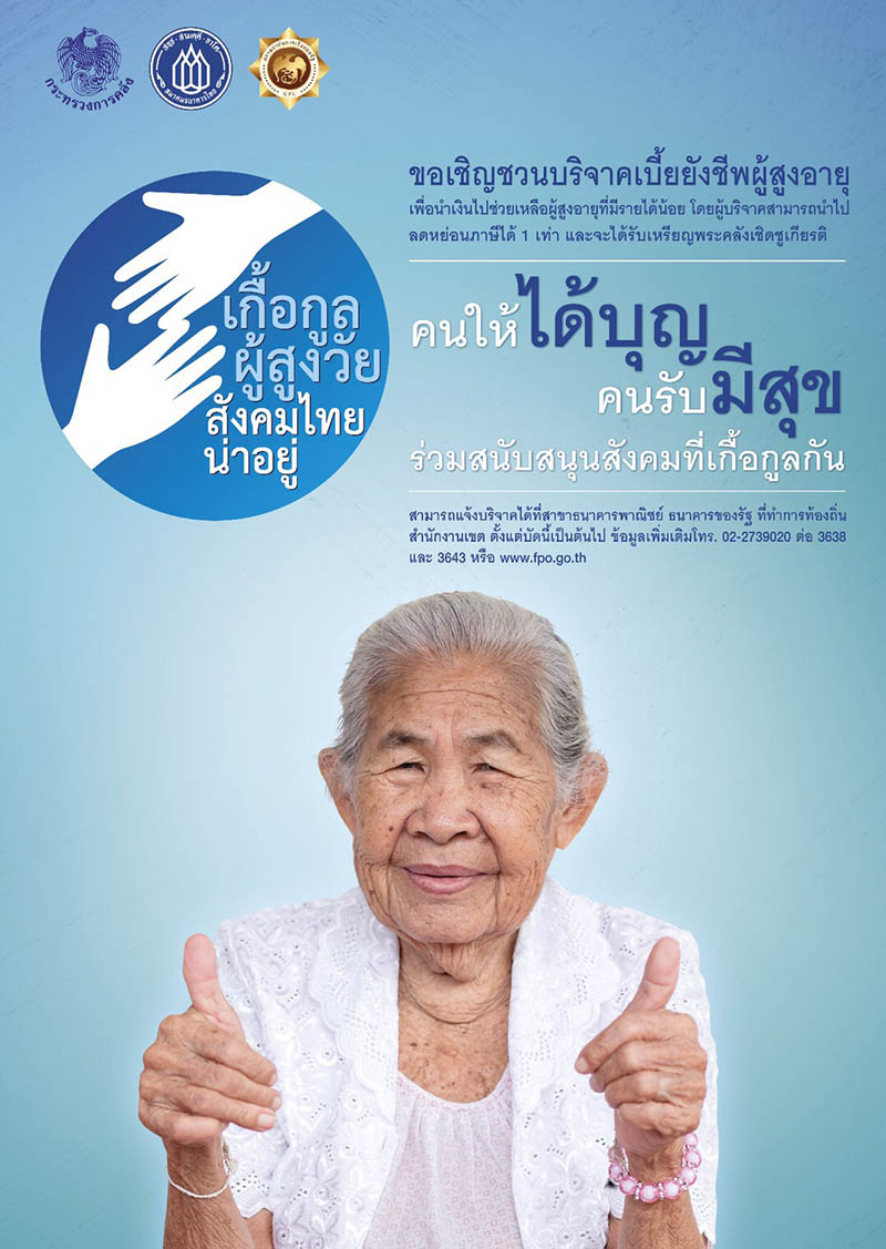ขอเชิญชวนบริจาคเบี้ยยังชีพผู้สูงอายุ เพื่อนำไปช่วยเหลือผู้สูงอายุที่มีรายได้น้อย