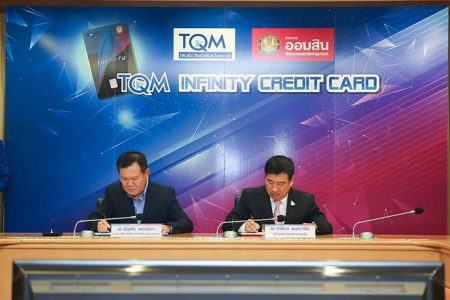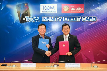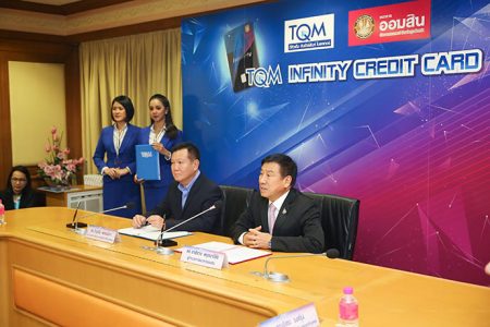 เมื่อวันจันทร์ที่ 18 พฤศจิกายน พ.ศ. 2562 ดร.ชาติชาย พยุหนาวีชัย ผู้อำนวยการธนาคารออมสิน และดร.อัญชลิน พรรณนิภา ประธานบริษัท ทีคิวเอ็ม คอร์ปอเรชั่น จำกัด (มหาชน) ลงนามบันทึกความร่วมมือทางธุรกิจและบริการระหว่างธนาคารออมสินและบริษัท ทีคิวเอ็ม คอร์เปอร์เรชั่น จำกัด (มหาชน) เพื่อร่วมกันออกผลิตภัณฑ์บัตรเครดิตธนาคารออมสินร่วม (Co-Brand) “TQM Infinity Credit Card” พร้อมมอบสิทธิประโยชน์แก่ลูกค้าผู้ถือบัตร โดยมีคณะผู้บริหารธนาคารออมสิน คณะผู้บริหารบริษัท ทีคิวเอ็ม คอร์เปอร์เรชั่น จำกัด (มหาชน) และสื่อมวลชนร่วมเป็นสักขีพยานในพิธีลงนามบันทึกความร่วมมือในครั้งนี้ ณ ห้องรามจิตติ ธนาคารออมสินสำนักงานใหญ่