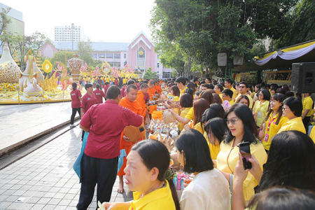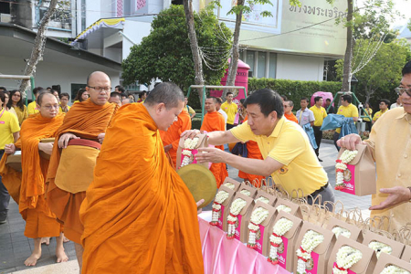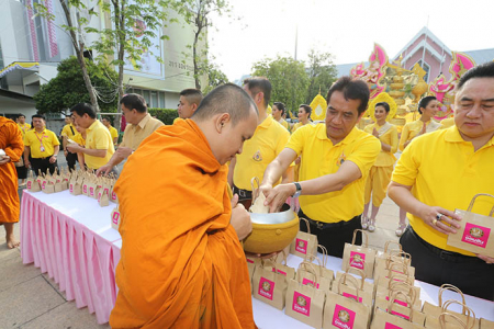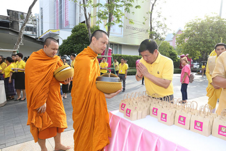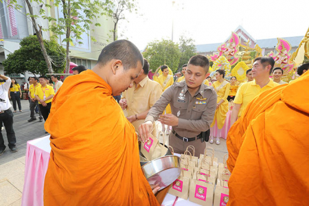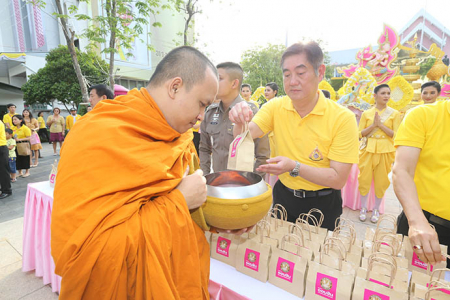 เมื่อวันพุธที่ 8 พฤษภาคม พ.ศ. 2562 ดร.ชาติชาย พยุหนาวีชัย ผู้อำนวยการธนาคารออมสิน พร้อมด้วยคณะผู้บริหาร พนักงาน และลูกจ้างธนาคารออมสิน ร่วมทำบุญตักบาตรพระภิกษุสงฆ์ จำนวน 68 รูป ถวายเป็นพระราชกุศลเนื่องในโอกาสมหามงคลพระราชพิธีบรมราชาภิเษก พุทธศักราช 2562 โดยมีคุณสุชัย สกุลรุ่งเรืองชัย ผู้อำนวยการเขตพญาไท และพันตำรวจโท นาถนริศ รัตนบุรี สารวัตรป้องกันและปราบปราม สถานีตำรวจนครบาลบางซื่อ ร่วมทำบุญตักบาตรเนื่องในโอกาสมหามงคลดังกล่าว ในโอกาสนี้ ผู้เข้าร่วมในพิธีทำบุญตักบาตรดังกล่าวได้ร่วมกันเคารพธงชาติพร้อมร้องเพลงชาติไทย เพลงสดุดีจอมราชา และเพลงสรรเสริญพระบารมี โดยพร้อมเพรียง เพื่อแสดงถึงความจงรักภักดีเนื่องศุภาวาระมหามงคลพระราชพิธีบรมราชาภิเษก พุทธศักราช 2562 ณ บริเวณหน้าธนาคารออมสินสำนักงานใหญ่