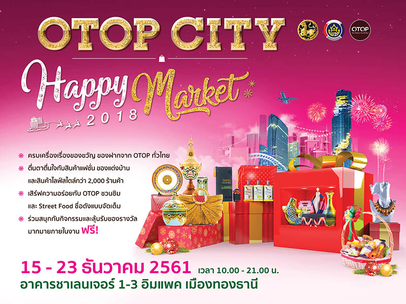 OTOP City 2018 ระหว่างวันที่ 15 – 23 ธันวาคม 2561 ณ ศูนย์แสดงสินค้าและการประชุม อิมแพ็คเมืองทองธานี อำเภอปากเกร็ด จังหวัดนนทบุรี