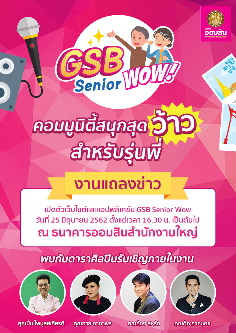 ธนาคารออมสินเชิญร่วมงานแถลงข่าวเปิดตัวเว็บไซต์ และ Application : gsbseniorwow - Government Savings Bank