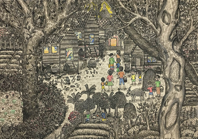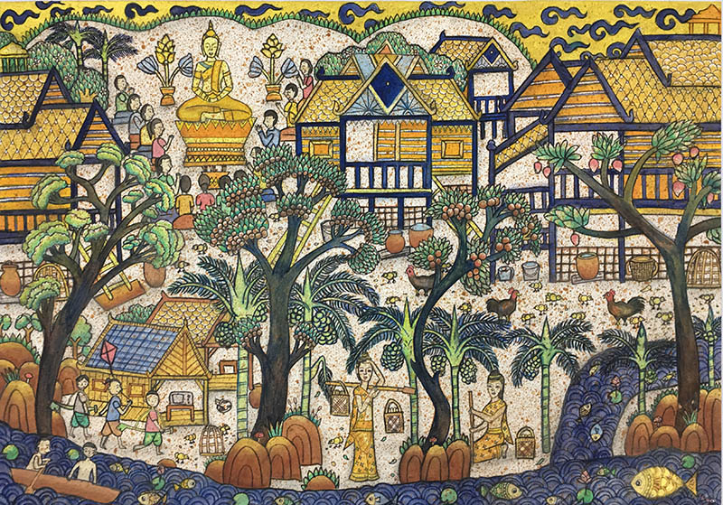 เด็กหญิงศตนัน สังฆ์สุข ผลงานชื่อ “วิถีไทย”