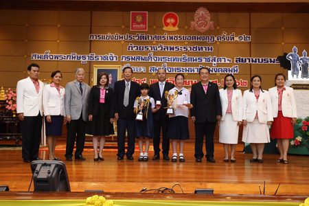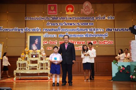 เมื่อวันเสาร์ที่ 23 พฤศจิกายน พ.ศ. 2562 ธนาคารออมสินโดยคุณธีระศักดิ์ เขมะนุเชษฐ์ ผู้อำนวยการภาค 3 ร่วมพิธีมอบรางวัลเพชรยอดมงกุฎถ้วยรางวัลพระราชทานสมเด็จพระกนิษฐาธิราชเจ้ากรมสมเด็จพระเทพรัตนราชสุดาฯ สยามบรมราชกุมารี และทุนการศึกษาสมเด็จพระมหารัชมงคลมุนีให้แก่นักเรียนที่ชนะเลิศการสอบแข่งขันประวัติศาสตร์เพชรยอดมงกุฎ ระดับประถมศึกษา ครั้งที่ 12 ประจำปี 2562 ณ โรงเรียนสตรีวิทยา โดยมี คุณสนิท แย้มเกษร รองเลขาธิการคณะกรรมการการศึกษาขั้นพื้นฐาน สำนักงานคณะกรรมการการศึกษาขั้นพื้นฐาน เป็นประธานในพิธีมอบรางวัลการสอบแข่งขันดังกล่าว ซึ่งธนาคารออมสินร่วมกับมูลนิธิร่มฉัตรสนับสนุนการจัดสอบแข่งขัน โดยผลการจัดสอบแข่งขันประวัติศาสตร์เพชรยอดมงกุฎ ระดับประถมศึกษา ปีที่ 1 – 3 เหรียญทอง ได้แก่ ด.ญ.ณัฐณิชาช์ เวชสุวรรณมณี โรงเรียนอนุบาลสุธีธร จ.นครปฐม เหรียญเงิน ได้แก่ ด.ญ.ภวณพร ไชยพุฒ โรงเรียนอนุบาลสุธีธร จ.นครปฐม และเหรียญทองแดง ได้แก่ ด.ช.กิตติพัศ ศรีไพโรจน์ โรงเรียนสาธิตจุฬาลงกรณ์มหาวิทยาลัย กรุงเทพฯ ระดับประถมศึกษา ปีที่ 4 – 6 เหรียญทอง ได้แก่ ด.ญ.กัลยกร วงศ์วิชยาภรณ์ โรงเรียนอนุบาลสุธีธร จ.นครปฐม เหรียญเงิน ได้แก่ ด.ช.ขันธ์ชัย ปรีชาพันธุ์ โรงเรียนอนุบาลสระบุรี และเหรียญทองแดง ได้แก่ ด.ช.ลภนพัฒน์ บุญช่วย โรงเรียนอนุบาลระยอง