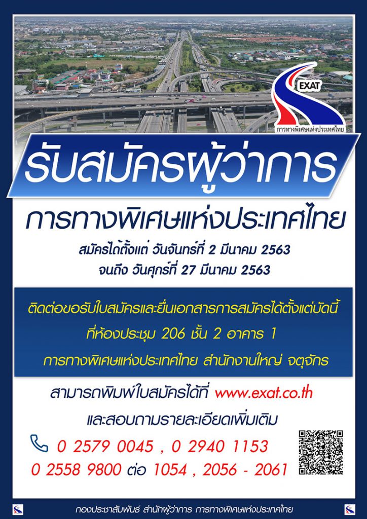 รับสมัครบุคคลเพื่อคัดเลือกเข้าดำรงตำแหน่งผู้ว่าการการทางพิเศษแห่งประเทศไทย