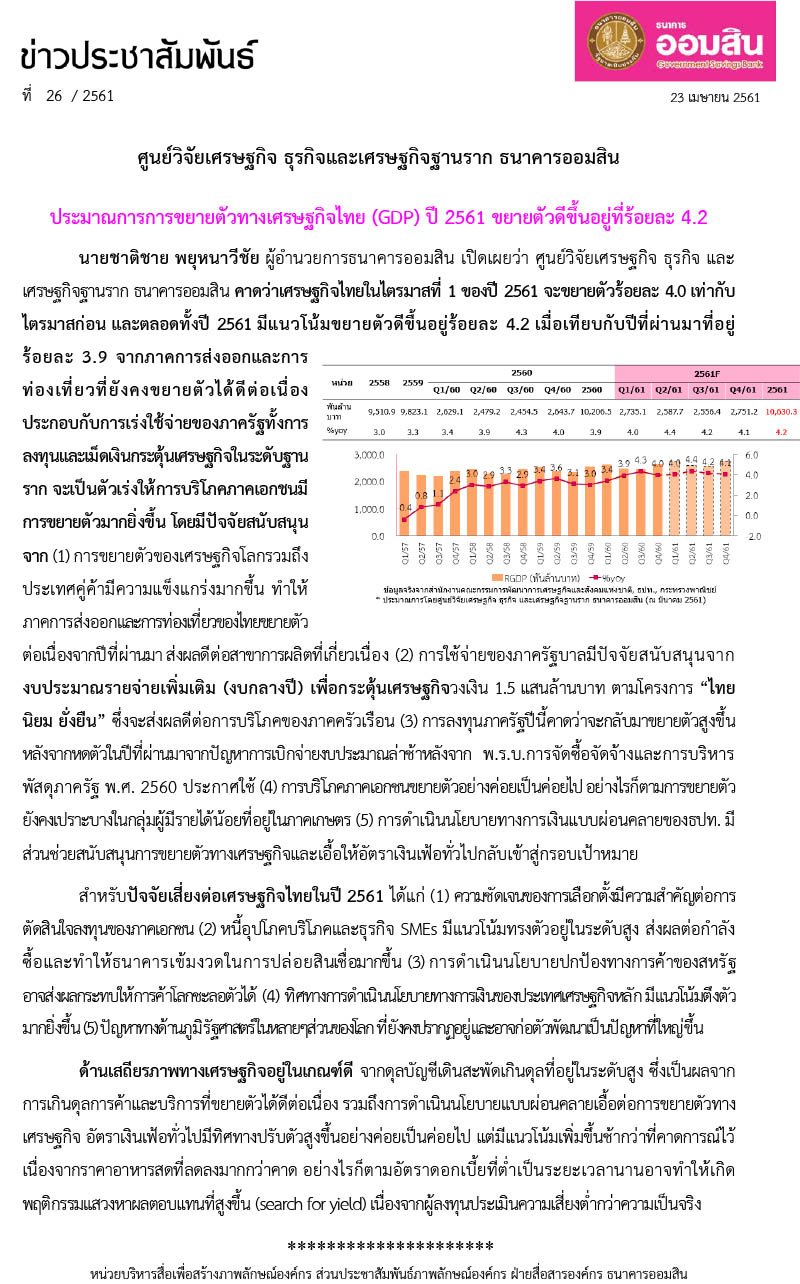 ศูนย์วิจัยเศรษฐกิจ ธุรกิจและเศรษฐกิจฐานรากธนาคารออมสิน