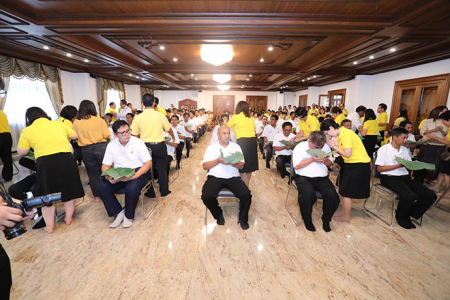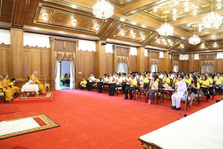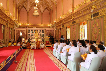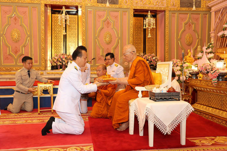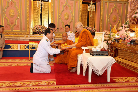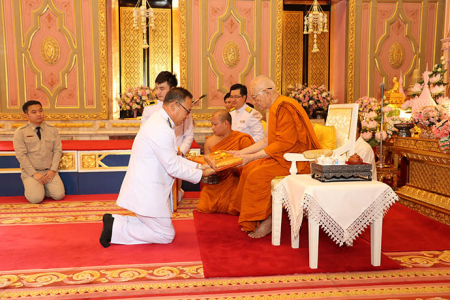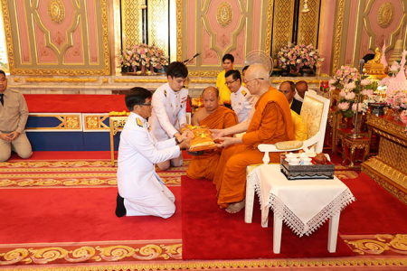 เมื่อวันเสาร์ที่ 29 มิถุนายน พ.ศ. 2562 ณ พระวิหาร วัดราชบพิธสถิตมหาสีมารามราชวรวิหาร สมเด็จพระอริยวงศาคตญาณ สมเด็จพระสังฆราช สกลมหาสังฆปริณายก ประทานพระวโรกาสให้ธนาคารออมสินโดยคุณสัณฐาน อยู่ศิริ รองผู้อำนวยการธนาคารออมสิน กลุ่มยุทธศาสตร์ พร้อมด้วยคณะผู้บริหาร และผู้อำนวยการภาค 18 ภาค เข้าเฝ้ารับประทานผ้าไตร เพื่อเชิญไปประกอบพิธีอุปสมบทโครงการ “อุปสมบท 1,010 รูป ทั่วไทย เฉลิมพระเกียรติเนื่องในโอกาสมหามงคลพระราชพิธีบรมราชาภิเษก” ซึ่งจะจัดขึ้นพร้อมกันในวันที่ 1 กรกฎาคม พ.ศ. 2562 ณ วัดในพื้นที่ต่างๆ ของธนาคารออมสินภาคทั้ง 18 ภาค ในการนี้ สมเด็จพระอริยวงศาคตญาณ สมเด็จพระสังฆราช สกลมหาสังฆปริณายก ทรงประทานสัมโมทนียกถาให้แก่ผู้เข้าร่วมอุปสมบทในโครงการดังกล่าว นับเป็นพระกรุณาอย่างหาที่สุดมิได้