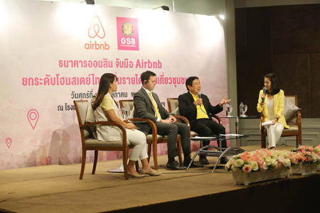 เมื่อวันศุกร์ที่ 17 พฤษภาคม พ.ศ. 2562 ดร.ชาติชาย พยุหนาวีชัย ผู้อำนวยการธนาคารออมสิน และมิสเตอร์ไมค์ ออร์กิล ผู้จัดการทั่วไปประจำภูมิภาคเอเชียตะวันออกเฉียงใต้ ฮ่องกง และไต้หวันของ Airbnb ร่วมเปิดตัวความร่วมมือ “ยกระดับโฮมสเตย์ไทย เพิ่มรายได้ท่องเที่ยวชุมชน” เพื่อส่งเสริมการท่องเที่ยวอย่างยั่งยืนระดับท้องถิ่นให้เกิดขึ้นพร้อมกับการสร้างรายได้ให้ชุมชนทั่วประเทศ ในงาน “GSB เติมเต็มพลัง Airbnb สานต่อดิจิทัลเพิ่มรายได้ท่องเที่ยวชุมชน” ซึ่งจัดขึ้นระหว่างวันที่ 15 – 17 พฤษภาคม พ.ศ. 2562 ณ โรงแรมมิราเคิล แกรนด์ คอนเวนชั่น กรุงเทพมหานคร ทั้งนี้ ภายในงานได้จัดให้มีการเสวนาในหัวข้อเรื่อง “เพิ่มรายได้ท่องเที่ยวชุมชน Airbnb ร่วมกับธนาคารออมสิน” โดยมีผู้อำนวยการธนาคารออมสิน พร้อมด้วย ผู้จัดการทั่วไปประจำภูมิภาคเอเชียตะวันออกเฉียงใต้ ฮ่องกง และไต้หวันของ Airbnb และคุณนิตยา ไล้สุวรรณ เจ้าของที่พัก Airbnb ดีเด่น ร่วมการเสวนาดังกล่าว
