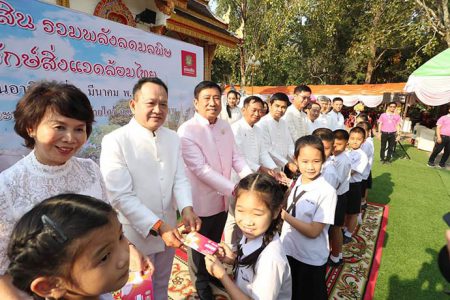 โอกาสนี้ ธนาคารได้จัดกิจกรรมเพื่อสังคมและสิ่งแวดล้อมตามแนวทาง “บวร” บ้าน วัด โรงเรียน “ออมสินรวมพลังลดมลพิษรักษ์สิ่งแวดล้อมไทย”โดยร่วมกับมูลนิธิออมสินเพื่อสังคมมอบทุนการศึกษาให้กับนักเรียนโรงเรียนมานิตวิทยาจำนวน 60 ทุน และธนาคารออมสินมอบอุปกรณ์ดับไฟป่าให้แก่สถานีควบคุมไฟป่าในพื้นที่จังหวัดเชียงรายจำนวน 5 แห่ง และมอบเครื่องอุปโภคบริโภคให้แก่ประชาชนในพื้นที่จำนวน 250 ชุด