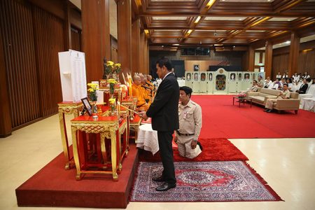 เมื่อวันจันทร์ที่ 11 พฤศจิกายน พ.ศ. 2562 คุณนำพร ยมนา รองผู้อำนวยการธนาคารออมสินอาวุโส กลุ่มทรัพยากรบุคคล เป็นประธานในพิธีทำบุญเลี้ยงพระเพื่ออุทิศส่วนกุศลให้กับสมาชิกฌาปนกิจสงเคราะห์พนักงานธนาคารออมสิน (ฌอส.) ที่ถึงแก่กรรม ประจำปี 2562 จำนวน 116 ท่าน โดยมีคณะผู้บริหาร พนักงานธนาคารออมสิน และญาติสมาชิกที่ถึงแก่กรรมเข้าร่วมในพิธี ณ หอประชุมบุรฉัตร ธนาคารออมสินสำนักงานใหญ่