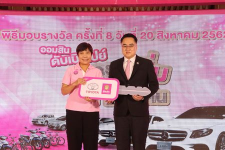 เมื่อวันอังคารที่ 20 สิงหาคม พ.ศ. 2562 ธนาคารออมสินโดยคุณอิสระ วงศ์รุ่ง รองผู้อำนวยการธนาคารออมสิน กลุ่มลูกค้าบุคคล เป็นประธานในพิธีมอบรางวัลรถยนต์ Toyota Hilux Revo รุ่น Double cap จำนวน 2 รางวัล รถจักรยานยนต์ Honda Wave 110i จำนวน 6 รางวัล และรางวัลรถจักรยาน Giant รุ่น Talon จำนวน 10 รางวัล ให้แก่ผู้โชคดีจากการออกรางวัลกิจกรรมส่งเสริมการขายสลากออมสินพิเศษ 5 ปี งวดที่ 510 “ออมสินดับเบิลเปย์ แจกรถเพิ่ม 216 คัน” ครั้งที่ 8 โดยมีคณะผู้บริหารและพนักงานธนาคารออมสิน พร้อมด้วยสื่อมวลชนร่วมเป็นสักขีพยานในการมอบรางวัลดังกล่าว ณ ธนาคารออมสินสำนักงานใหญ่