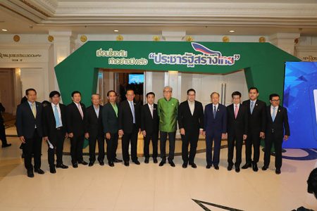 เมื่อวันเสาร์ที่ 21 กันยายน พ.ศ. 2562 ดร.ชาติชาย พยุหนาวีชัย ผู้อำนวยการธนาคารออมสิน พร้อมคณะผู้บริหารและพนักงานธนาคารออมสิน ร่วมการประชุมรวมพลังขับเคลื่อนการพัฒนาเศรษฐกิจฐานรากอย่างยั่งยืน “ประชารัฐสร้างไทย” เพื่อนำเสนอแนวทางการขับเคลื่อนการพัฒนาเศรษฐกิจฐานรากอย่างยั่งยืน โดยมีดร.สมคิด จาตุศรีพิทักษ์ รองนายกรัฐมนตรี เป็นประธานในการประชุมและมอบนโยบาย Transform เศรษฐกิจฐานราก เพื่อการพัฒนาที่ยั่งยืน และมีดร.อุตตม สาวนายน รัฐมนตรีว่าการกระทรวงการคลัง มอบนโยบายเกี่ยวกับการบูรณาการพัฒนาเศรษฐกิจฐานรากอย่างยั่งยืน นอกจากนี้ยังมีรัฐมนตรีว่าการกระทรวงต่างๆ ที่เกี่ยวข้อง ร่วมประชุมและมอบนโยบาย ณ ห้องรอยัลจูบิลี่บอลรูม อิมแพค เมืองทองธานี จ.นนทบุรี
