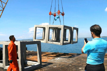 เมื่อวันพุธ ที่ 6 พฤษภาคม พ.ศ. 2563 ธนาคารออมสินจัดกิจกรรมเพื่อสังคมและสิ่งแวดล้อม (CSR) “ออมสินสร้างบ้านปลา รักษาทะเลไทย” ครั้งที่ 9 ณ หาดวาสุกรี ต.ตะลุบัน อ.สายบุรี จ.ปัตตานี โดยมีคุณบุญสิทธิ์ อำภา ผู้อำนวยการเขตปัตตานี คุณสมมาตร บารา นายอำเภอสายบุรี หัวหน้าหน่วยงานราชการ คุณภูเบศ จันทนิมิ นายกสมาคมประมงอวนล้อมจับ (ประเทศไทย) ประชาชนในพื้นที่ ผู้แทนกลุ่มประมงชายฝั่ง และผู้นำศาสนา อ.สายบุรี เข้าร่วมกิจกรรมในครั้งนี้ ซึ่งธนาคารออมสินได้สนับสนุนโครงการฟื้นฟูทรัพยากรสัตว์น้ำชายฝั่งทะเล ด้วยการวางปะการังเทียมชนิดคอนกรีตตามมาตรฐานของกรมประมง จำนวน 450 แท่ง เป็นเงิน 2,550,000 บาท เพื่อเป็นแหล่งอาศัยของสัตว์น้ำ และเป็นการเพิ่มทรัพยากรสัตว์น้ำ ณ จุดวางปะการังเทียม พิกัดละติจูด 6 องศา 44.690 ลิปดาเหนือลองติจูด 101 องศา 38.650 ลิปดาตะวันออก ในพื้นที่อ่าวไทย ในการนี้ ธนาคารออมสินยังได้มอบผ้าปูละหมาด จำนวน 107 ผืน เป็นเงิน 25,000 บาท ให้กับมัสยิดในพื้นที่ จำนวน 9 แห่ง เนื่องในโอกาสที่ธนาคารออมสินครบรอบ 107 ปี ด้วย