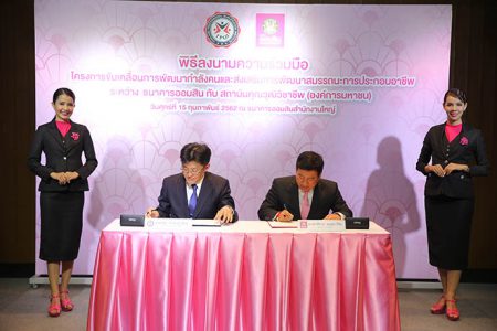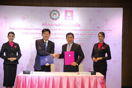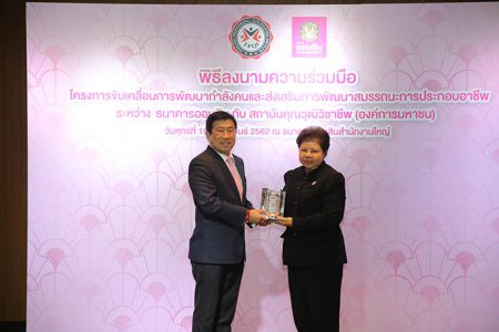 เมื่อวันศุกร์ที่ 15 กุมภาพันธ์ พ.ศ. 2562 คุณชาติชาย พยุหนาวีชัย ผู้อำนวยการธนาคาร และคุณพิสิฐ รังสฤษฎ์วุฒิกุล ผู้อำนวยการสถาบันคุณวุฒิวิชาชีพ (องค์การมหาชน) ร่วมลงนามบันทึกข้อตกลงความร่วมมือโครงการขับเคลื่อนการพัฒนากำลังคนและส่งเสริมการพัฒนาสมรรถนะการประกอบอาชีพระหว่างธนาคารออมสินกับสถาบันคุณวุฒิวิชาชีพ (องค์การมหาชน) เพื่อร่วมพัฒนาสมรรถนะกลุ่มผู้ถือบัตรสวัสดิการแห่งรัฐที่ลงทะเบียนฝึกอบรมเพื่อพัฒนาศักยภาพด้านอาชีพ ตามมาตรการพัฒนาคุณภาพชีวิตผู้มีสวัสดิการแห่งรัฐ โดยมีคุณนฤมล พูลทรัพย์ ที่ปรึกษาสถาบันคุณวุฒิวิชาชีพ พร้อมด้วยคณะผู้บริหารธนาคารออมสิน หน่วยงานพันธมิตร และสื่อมวลชน ร่วมเป็นสักขีพยานการลงนามบันทึกข้อตกลงความร่วมมือดังกล่าว ณ หอประชุมเพชรรัตน ธนาคารออมสินสำนักงานใหญ่