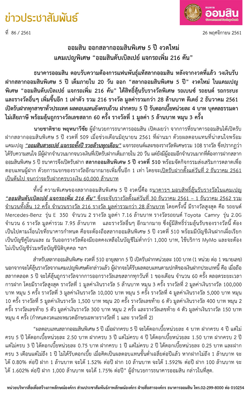 ออมสิน ออกสลากออมสินพิเศษ 5 ปี งวดใหม่ - Government Savings Bank