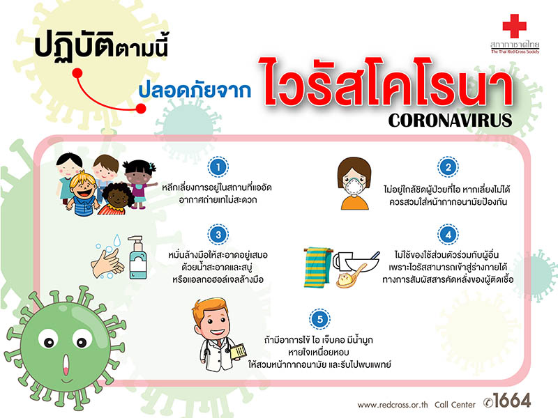 5 วิธีปฏิบัติตามนี้ ปลอดภัยจาก ไวรัสโคโรน่า จาก สภากาชาดไทย