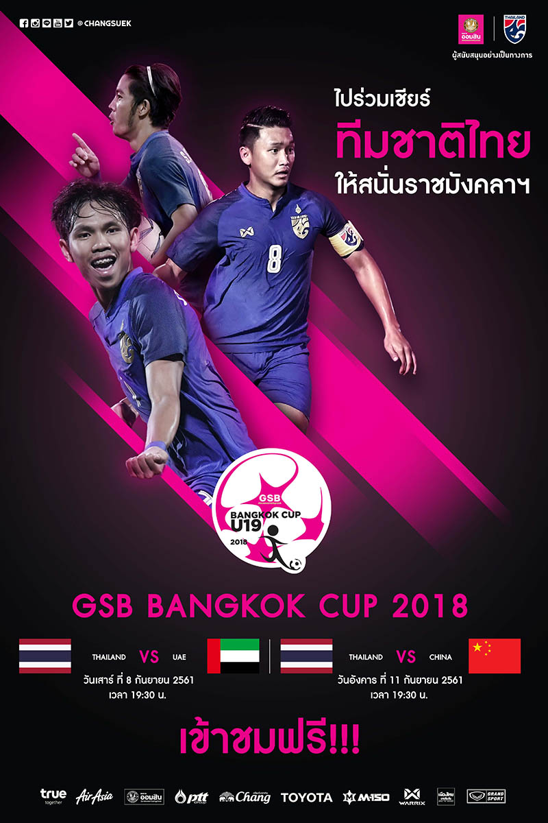 เจอกันที่ ราชมังคลา !! 8 และ 11 กันยายน 2561 ช้างศึกชุดเล็กพร้อมประกาศศักดา!!ระเบิดศึก GSB Bangkok Cup 2018 กับศึกฟุตบอลทีมชาติไทยรุ่นไม่เกิน 19 ปี เพื่อเตรียมความพร้อมรับศึก AFC U-19 Championship 2018