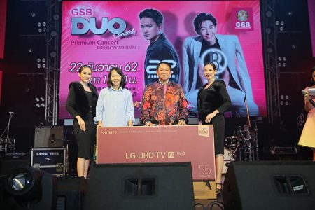เมื่อวันอาทิตย์ที่ 22 ธันาวคม พ.ศ. 2562 ธนาคารออมสินโดยคุณอนุรักษ์ เสงี่ยมจิตร ผู้ช่วยผู้อำนวยการธนาคารออมสิน สายงานลูกค้าผู้ประกอบการ SMEs Start up เป็นประธานเปิดการแสดง GSB DUO CONCERT 2019 : บอย PEACMAKER & เอ๊ะ จิรากร ซึ่งธนาคารออมสินจัดขึ้นเพื่อสร้างความสัมพันธ์อันดีตลอดจนส่งมอบความรู้สึกพิเศษและประสบการณ์ใหม่ให้กับลูกค้าผ่าน Music Strategy ในการนี้ ผู้ช่วยผู้อำนวยการธนาคารออมสิน สายงานลูกค้าผู้ประกอบการ SMEs Start up ได้มอบช่อดอกไม้ขอบคุณศิลปิน บอย PEACMAKER และ เอ๊ะ จิรากร ที่ได้ร่วมแสดงคอนเสิร์ตในครั้งนี้ ณ GSB Stadium 29 จ.นนทบุรี