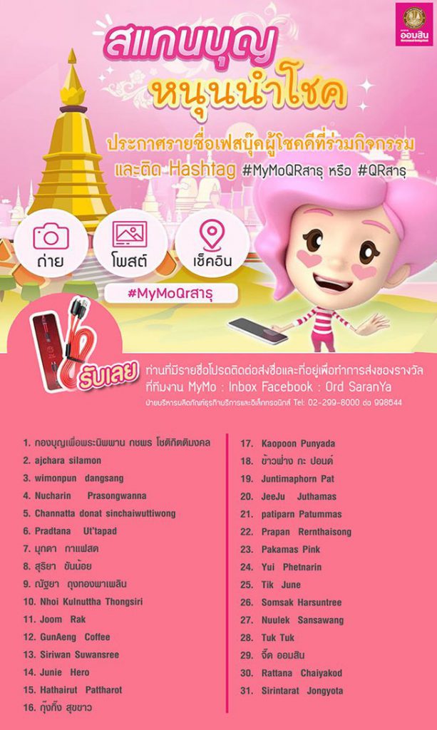 รายชื่อผู้โชคดีกิจกรรม สแกนบุญ หนุนนำโชค ประจำเดือนมิถุนายน