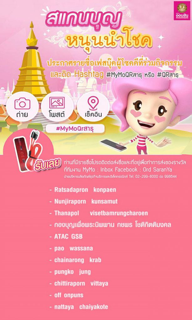 ประกาศรายชื่อผู้โชคดี สแกนบุญ หนุนนำโชค