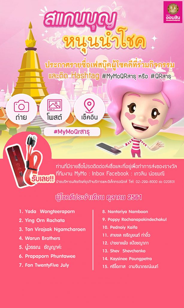 รายชื่อผู้โชคดีกิจกรรม สแกนบุญ หนุนนำโชค ประจำเดือนตุลาคม