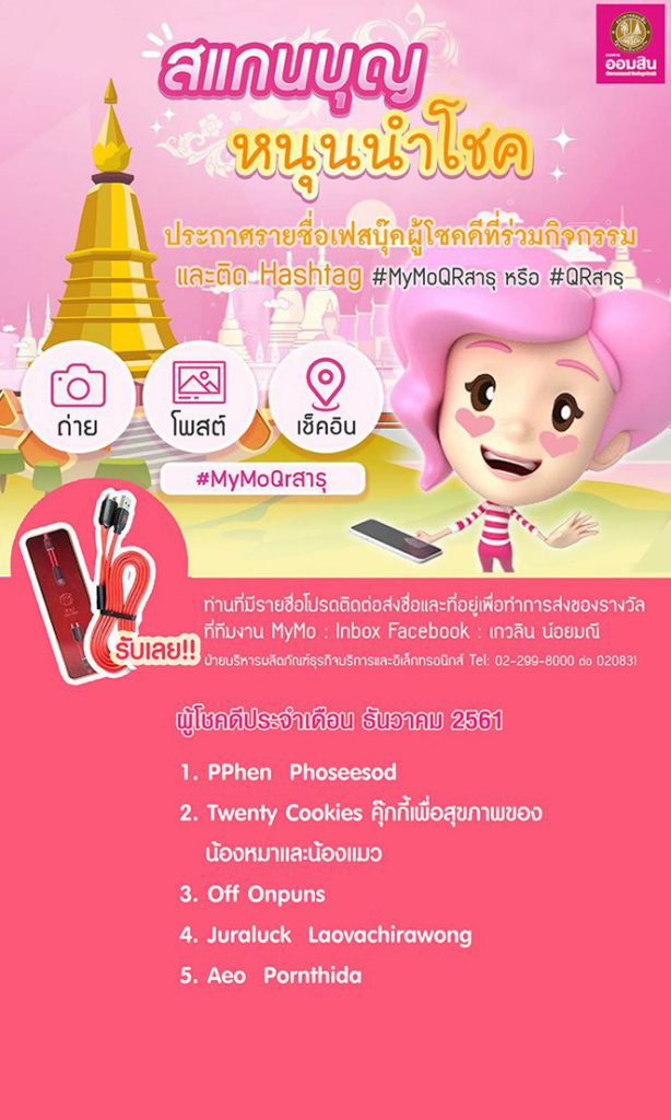 รายชื่อผู้โชคดีกิจกรรม สแกนบุญ หนุนนำโชค ประจำเดือนธันวาคม