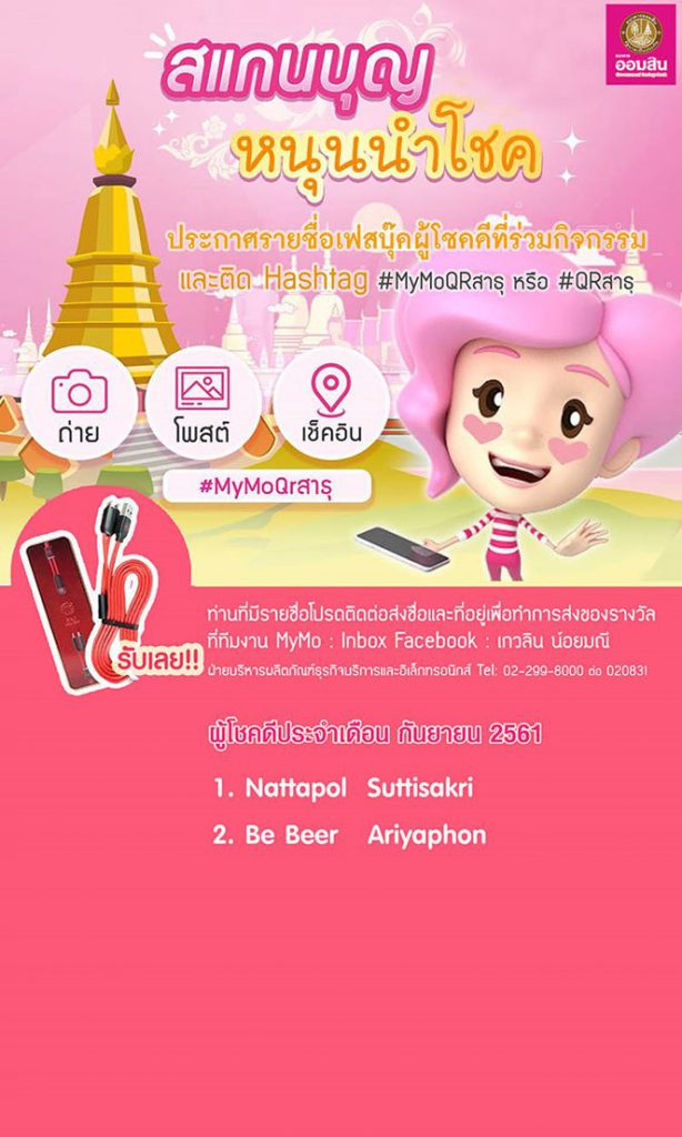 รายชื่อผู้โชคดีกิจกรรม สแกนบุญ หนุนนำโชค ประจำเดือนกันยายน