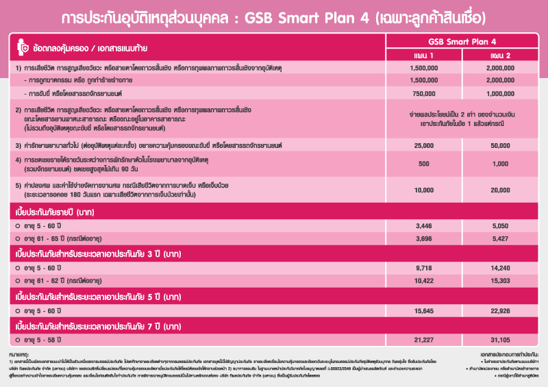 - แผนประกันภัยนี้สงวนสิทธิ์เฉพาะลูกค้าสินเชื่อ ธนาคารออมสิน เท่านั้น